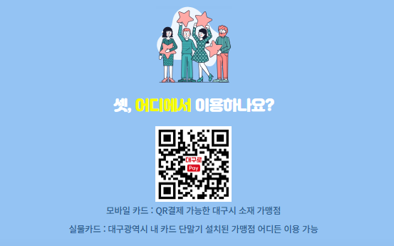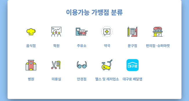 → 대구 지역 내 가맹점 등록이 된 생활형 사업장에서 사용돼요 (마트, 음식점, 약국 등).